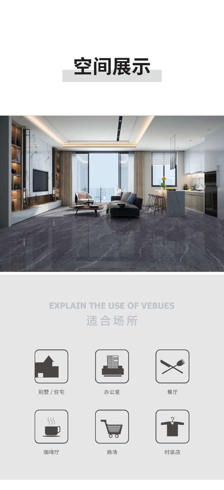 恒福瓷砖产品品类涵盖岩板、世纪大板、大理石瓷砖、全抛釉、玻化砖、釉面砖等配套设施,一站式满足消费者个性消费需求。