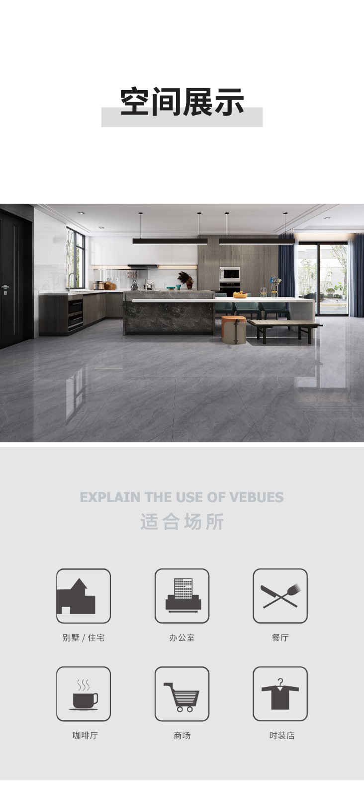 恒福瓷砖产品品类涵盖岩板、世纪大板、大理石瓷砖、全抛釉、玻化砖、釉面砖等配套设施,一站式满足消费者个性消费需求。