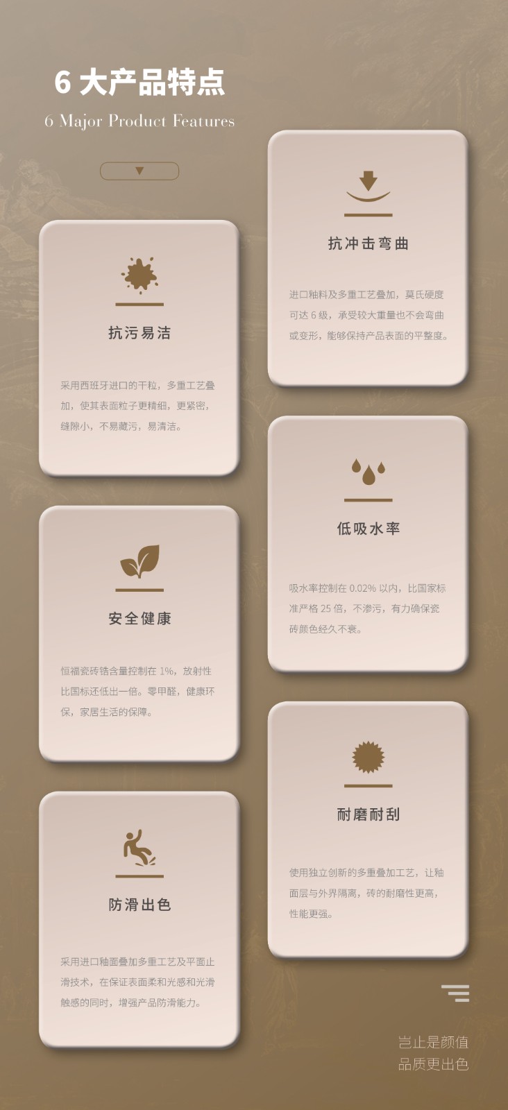 恒福陶瓷不断弓|领瓷砖行业消费潮流,产品广泛应用于全国多个高端地标项目,如广州亚运会亚运城、万达广场、恒大地产等。目前为止已经有10000多个大型的工程项目选择了恒福。