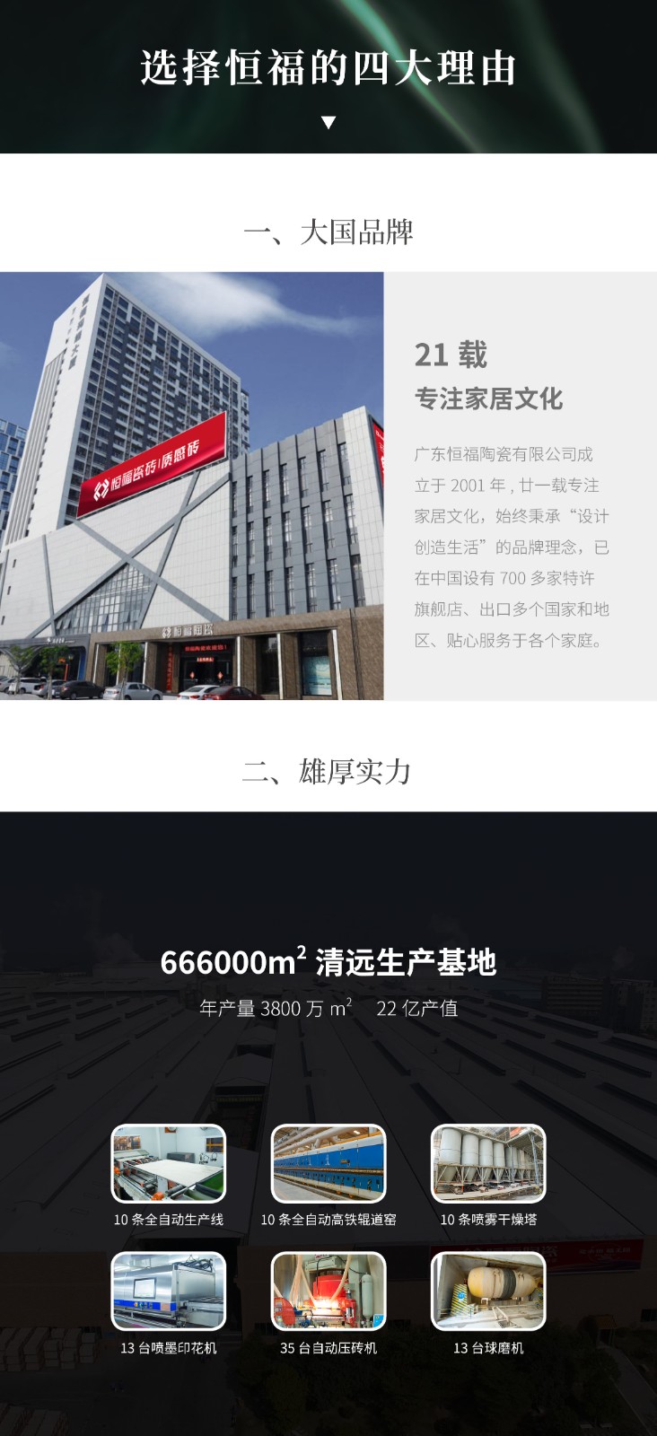 广东恒福陶瓷有限公司成立于2001年,以品质作为企业的生命线,是中国为数不多的集设计、研发、生产、销售于一体的现代大型建陶企业。