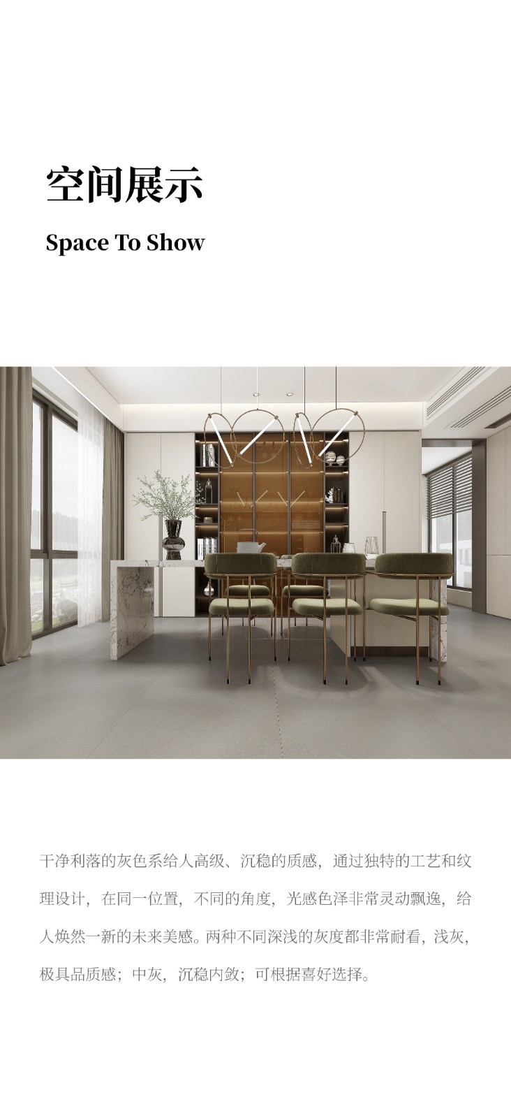 恒福瓷砖产品品类涵盖岩板、世纪大板、大理石瓷砖、全抛釉、玻化砖、釉面砖等配套设施,一站式满足消费者个性消费需求。