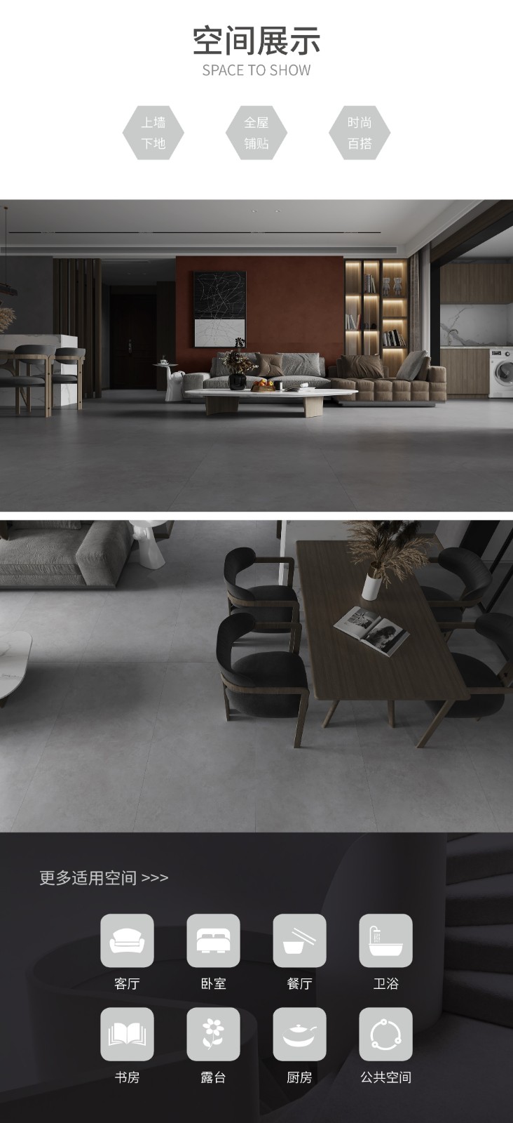 恒福瓷砖产品品类涵盖岩板、世纪大板、大理石瓷砖、全抛釉、玻化砖、釉面砖等配套设施,一站式满足消费者个性消费需求。