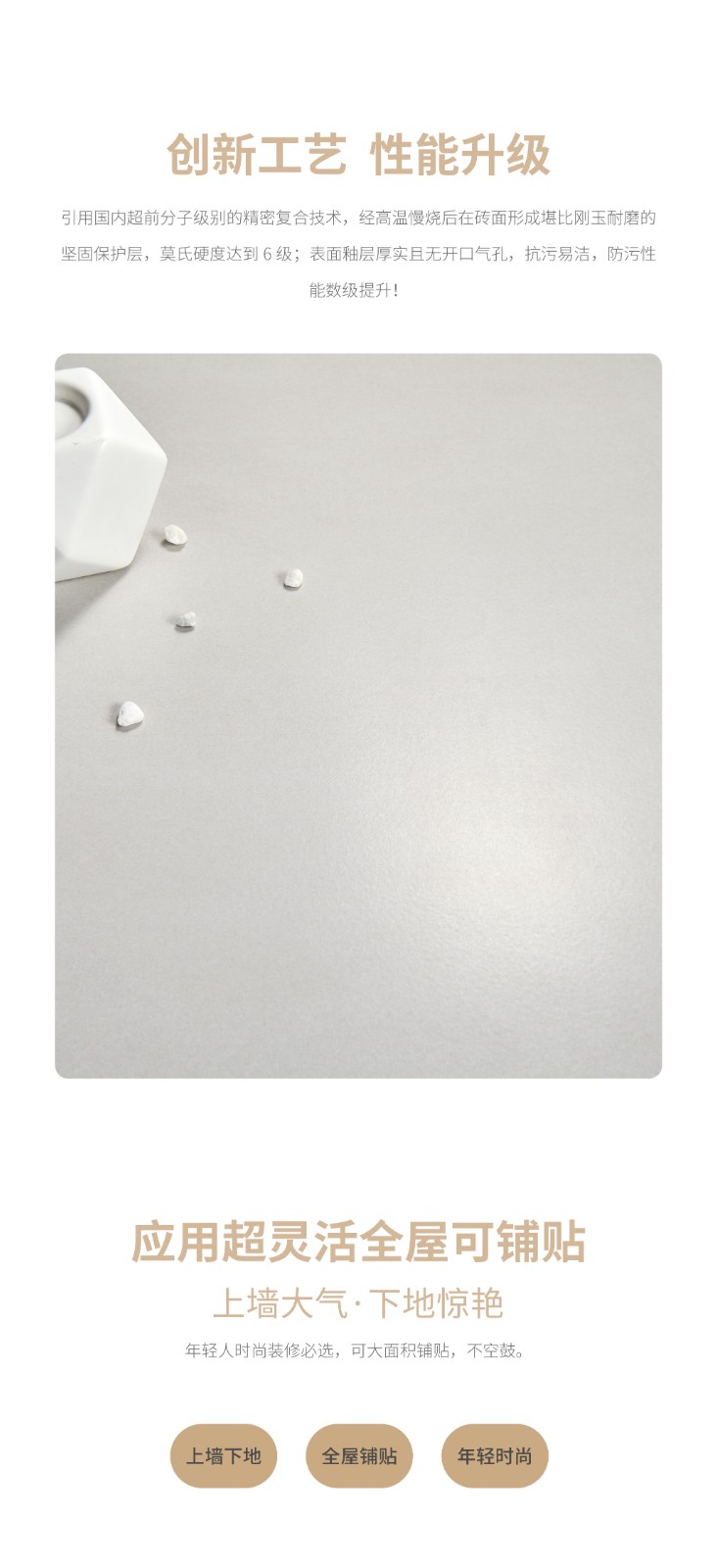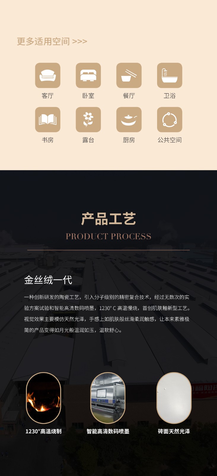 恒福瓷砖产品品类涵盖岩板、世纪大板、大理石瓷砖、全抛釉、玻化砖、釉面砖等配套设施,一站式满足消费者个性消费需求。