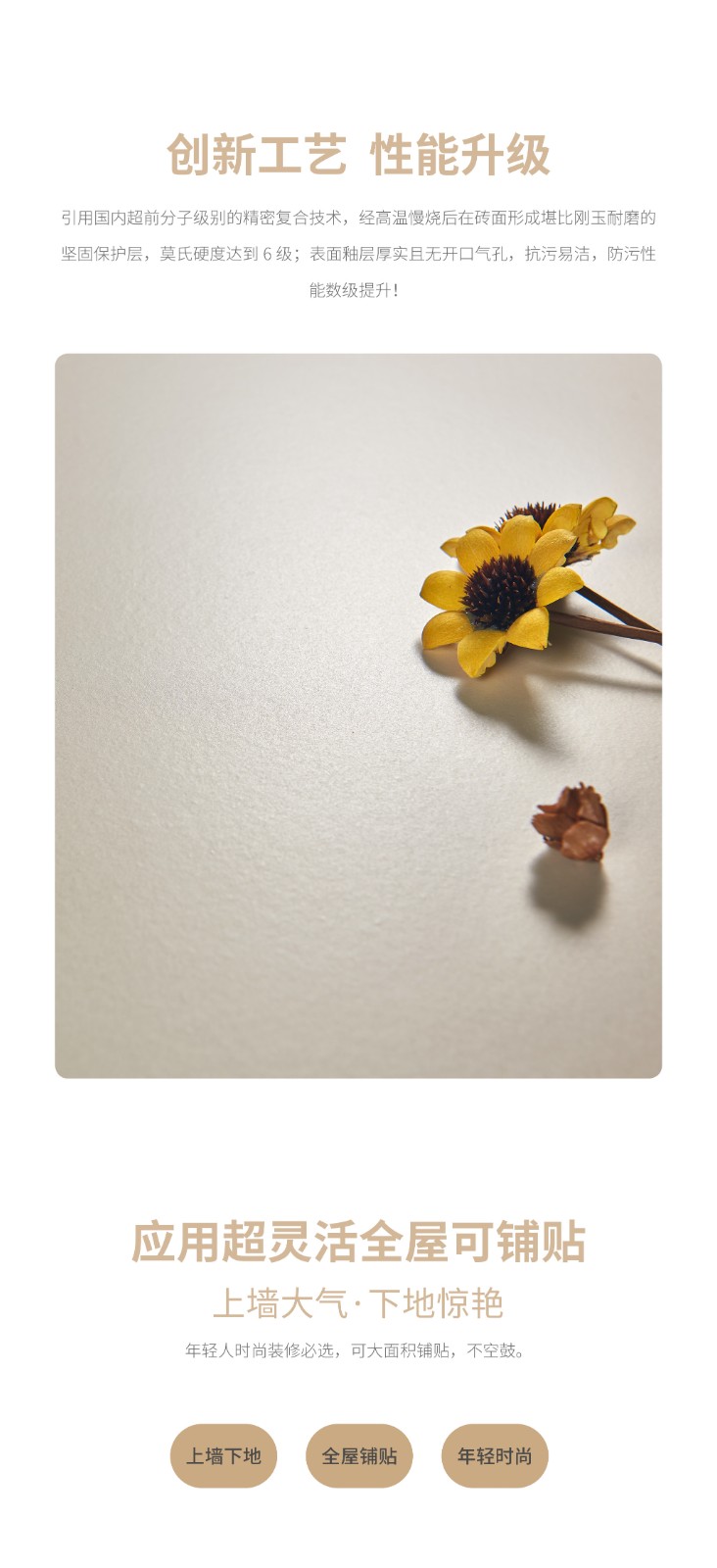 恒福瓷砖产品品类涵盖岩板、世纪大板、大理石瓷砖、全抛釉、玻化砖、釉面砖等配套设施,一站式满足消费者个性消费需求。