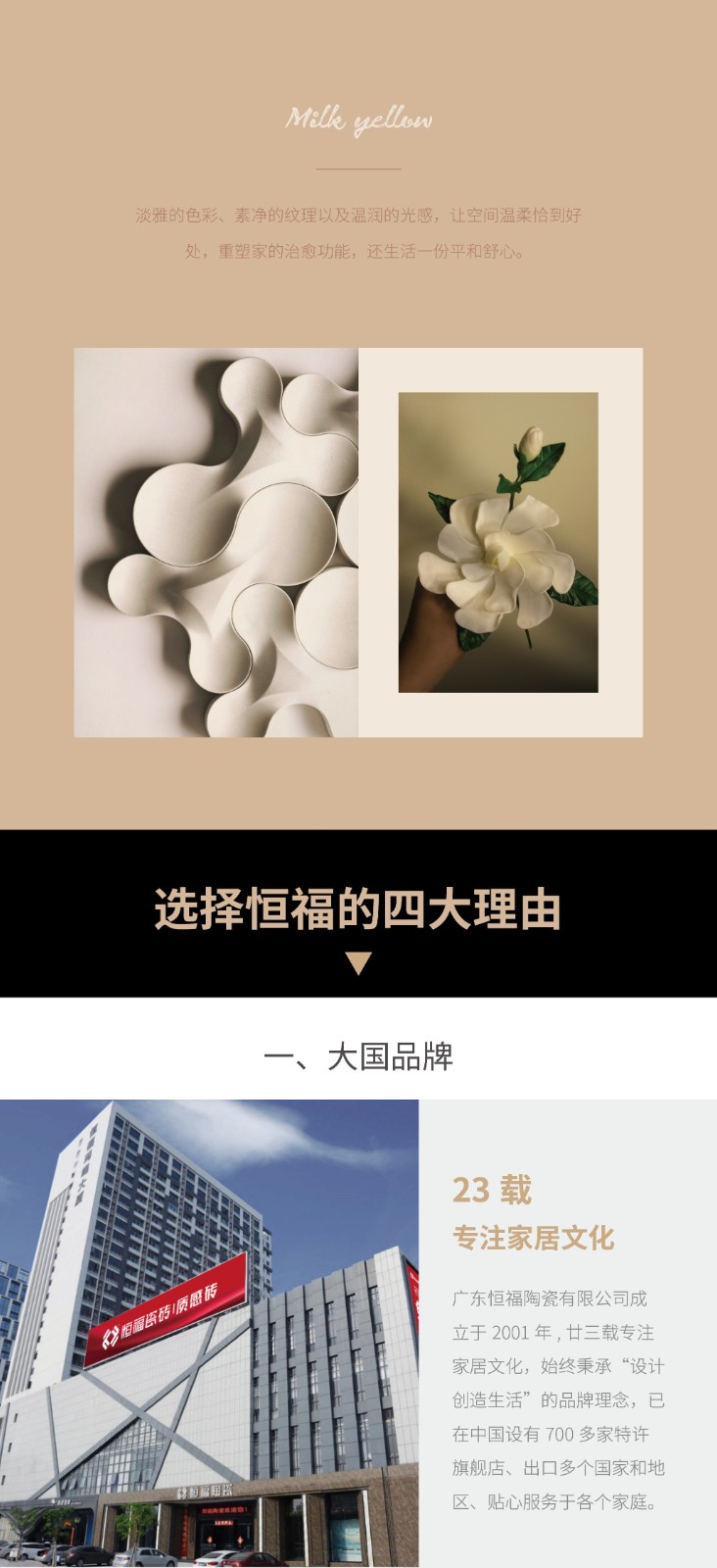 广东恒福陶瓷有限公司成立于2001年,以品质作为企业的生命线,是中国为数不多的集设计、研发、生产、销售于一体的现代大型建陶企业。