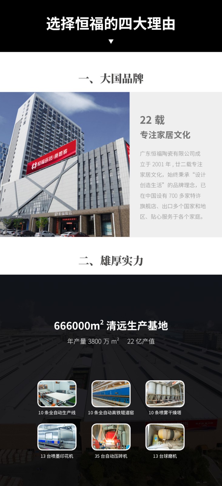 广东恒福陶瓷有限公司成立于2001年,以品质作为企业的生命线,是中国为数不多的集设计、研发、生产、销售于一体的现代大型建陶企业。