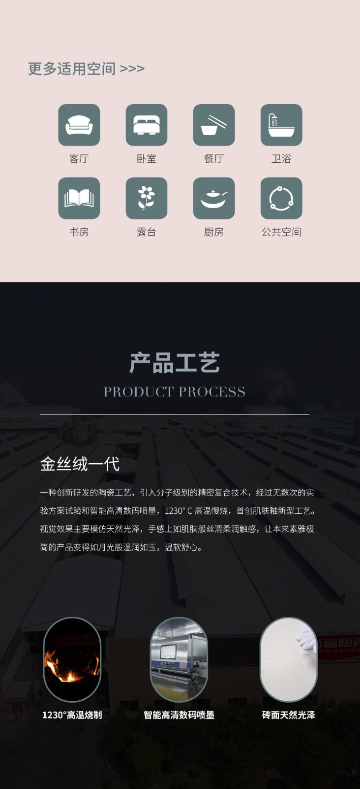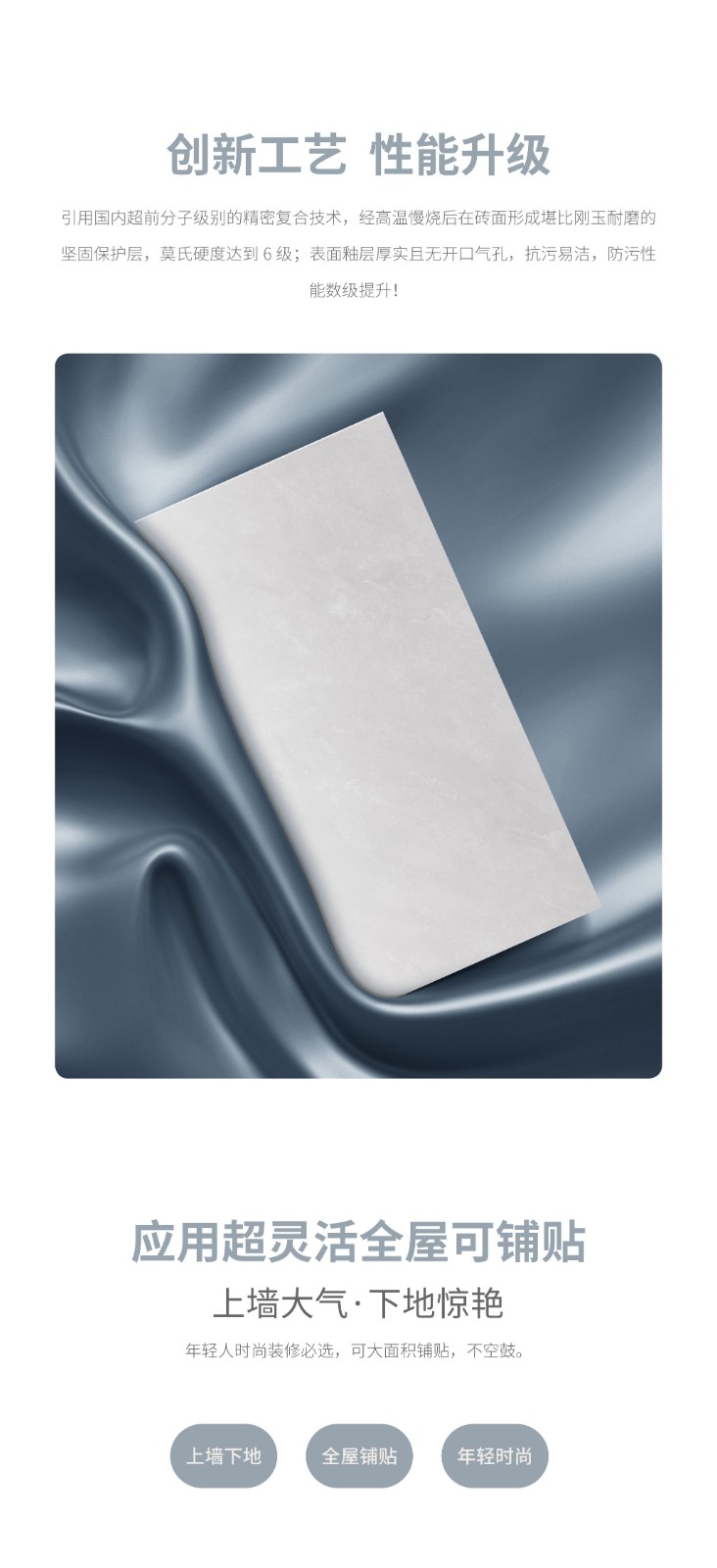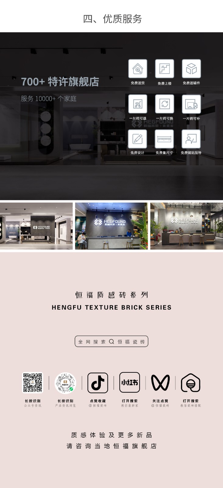 恒福瓷砖产品品类涵盖岩板、世纪大板、大理石瓷砖、全抛釉、玻化砖、釉面砖等配套设施,一站式满足消费者个性消费需求。