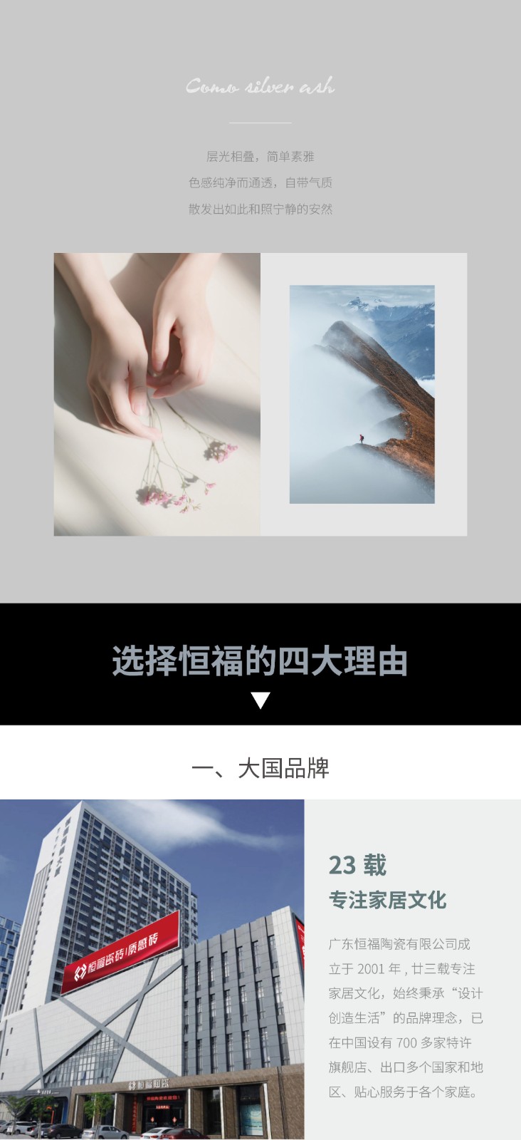 广东恒福陶瓷有限公司成立于2001年,以品质作为企业的生命线,是中国为数不多的集设计、研发、生产、销售于一体的现代大型建陶企业。