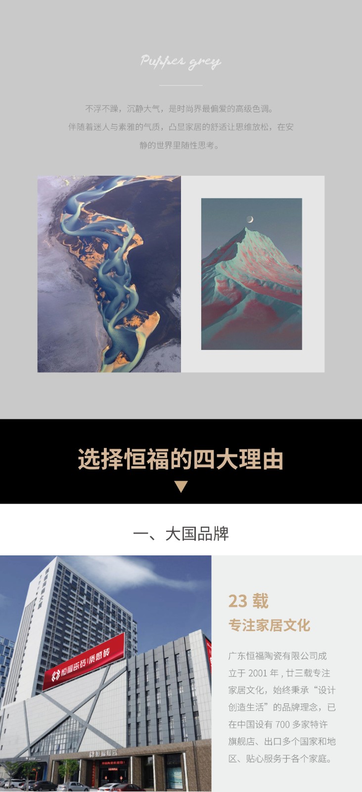 广东恒福陶瓷有限公司成立于2001年,以品质作为企业的生命线,是中国为数不多的集设计、研发、生产、销售于一体的现代大型建陶企业。
