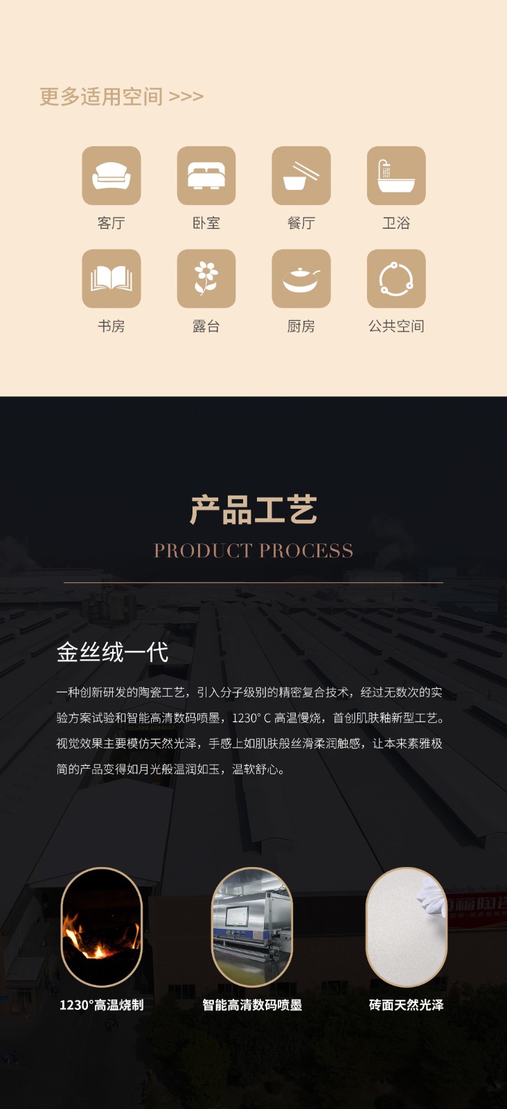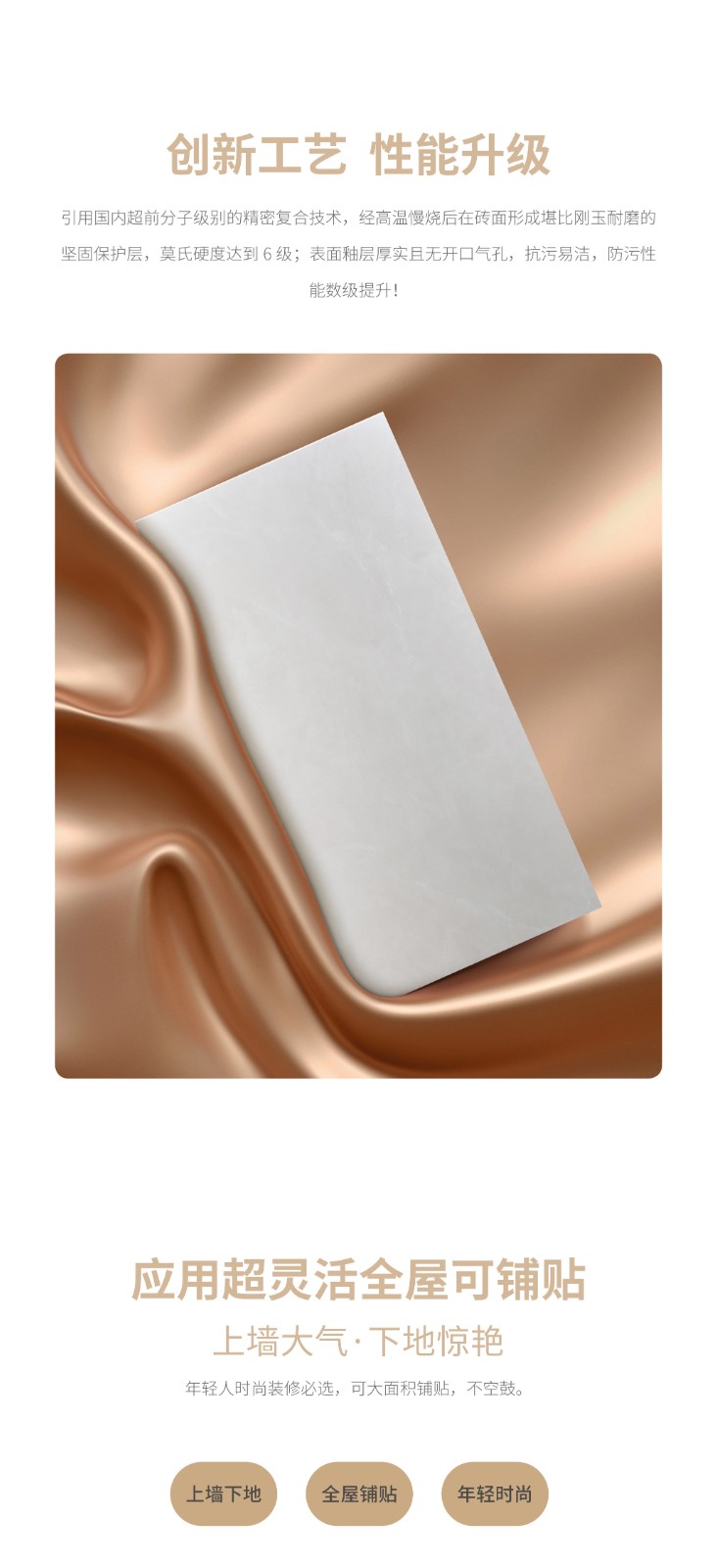恒福瓷砖产品品类涵盖岩板、世纪大板、大理石瓷砖、全抛釉、玻化砖、釉面砖等配套设施,一站式满足消费者个性消费需求。