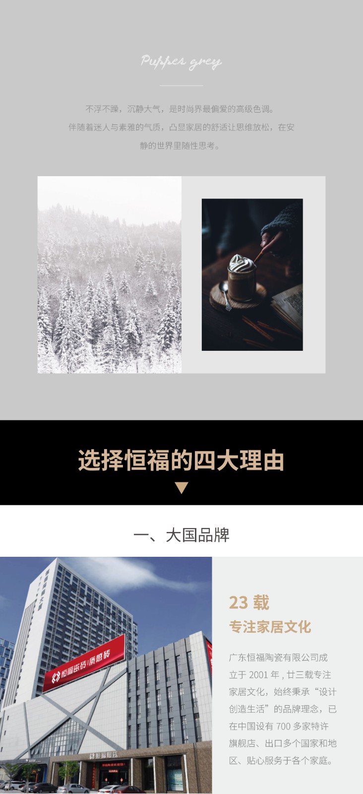 广东恒福陶瓷有限公司成立于2001年,以品质作为企业的生命线,是中国为数不多的集设计、研发、生产、销售于一体的现代大型建陶企业。