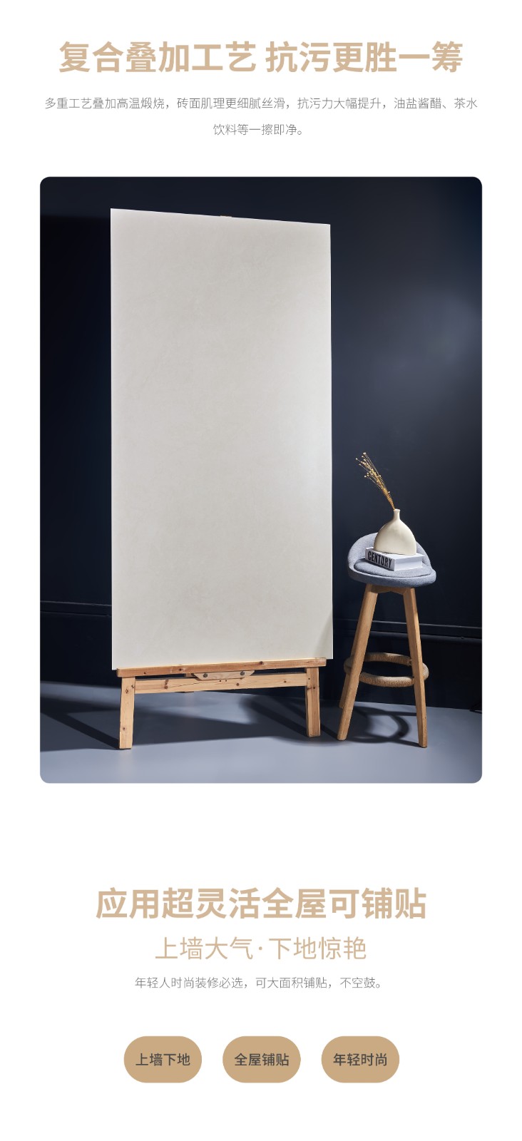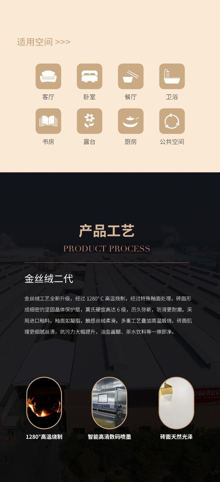 恒福瓷砖产品品类涵盖岩板、世纪大板、大理石瓷砖、全抛釉、玻化砖、釉面砖等配套设施,一站式满足消费者个性消费需求。