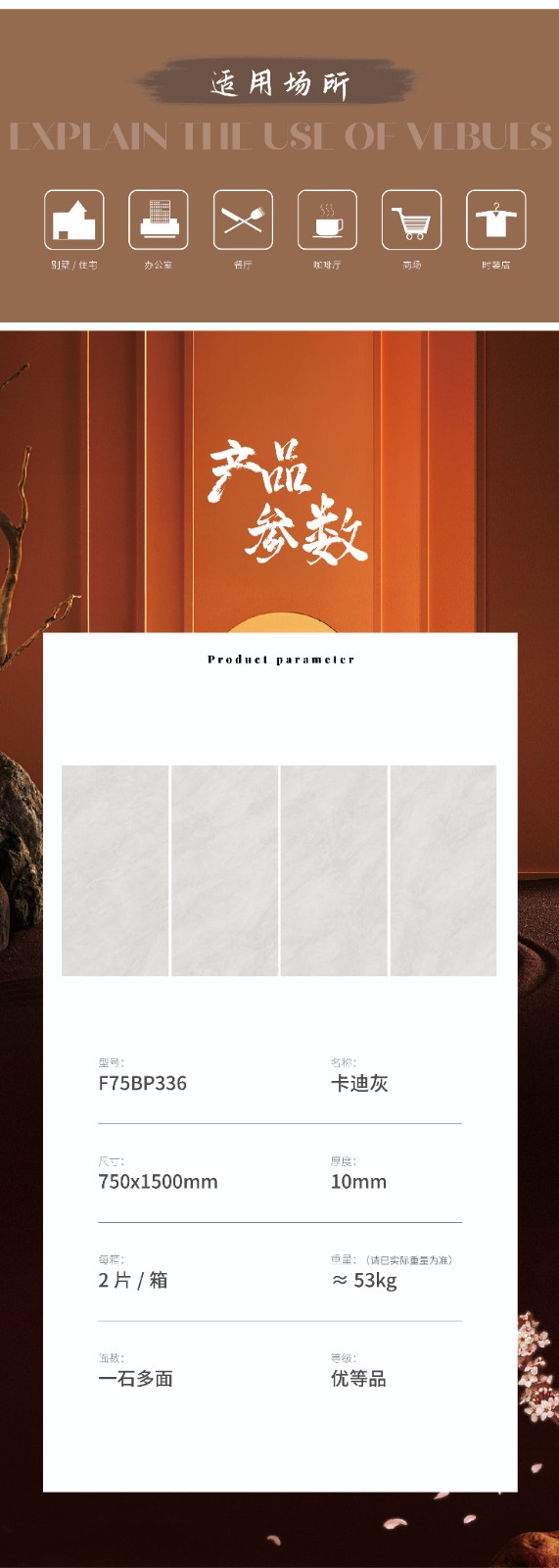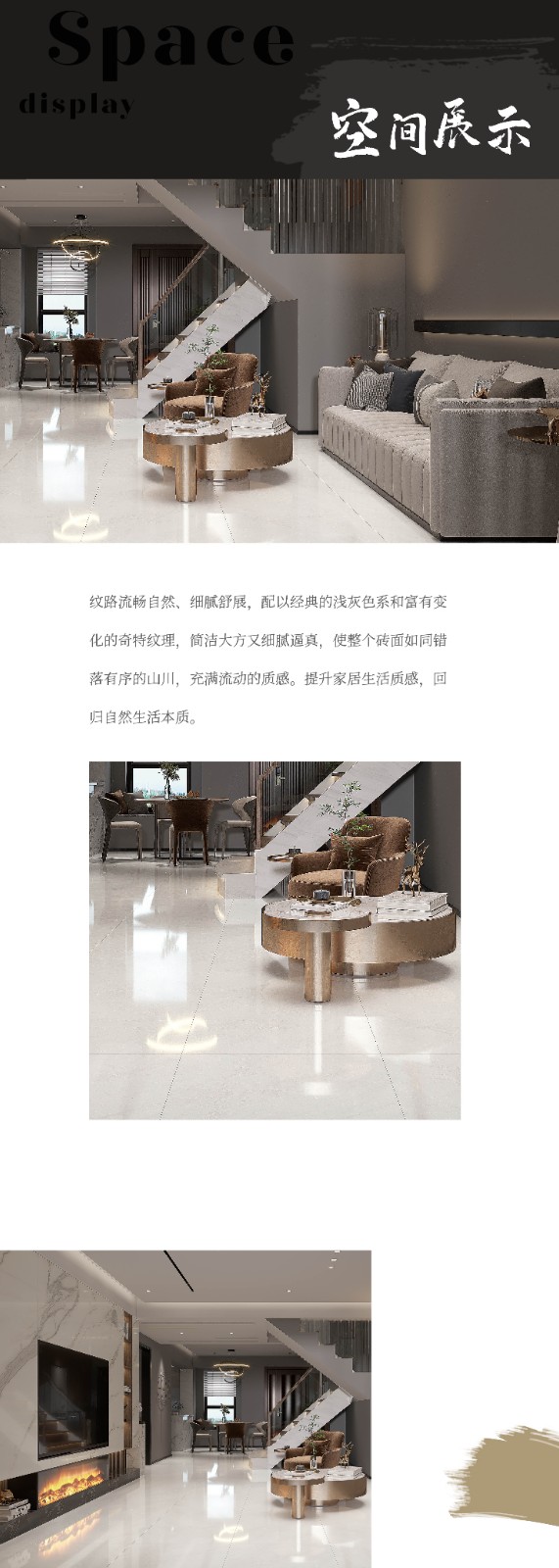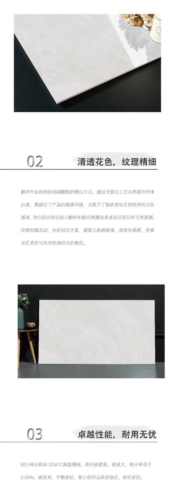 恒福瓷砖产品品类涵盖岩板、世纪大板、大理石瓷砖、全抛釉、玻化砖、釉面砖等配套设施,一站式满足消费者个性消费需求。
