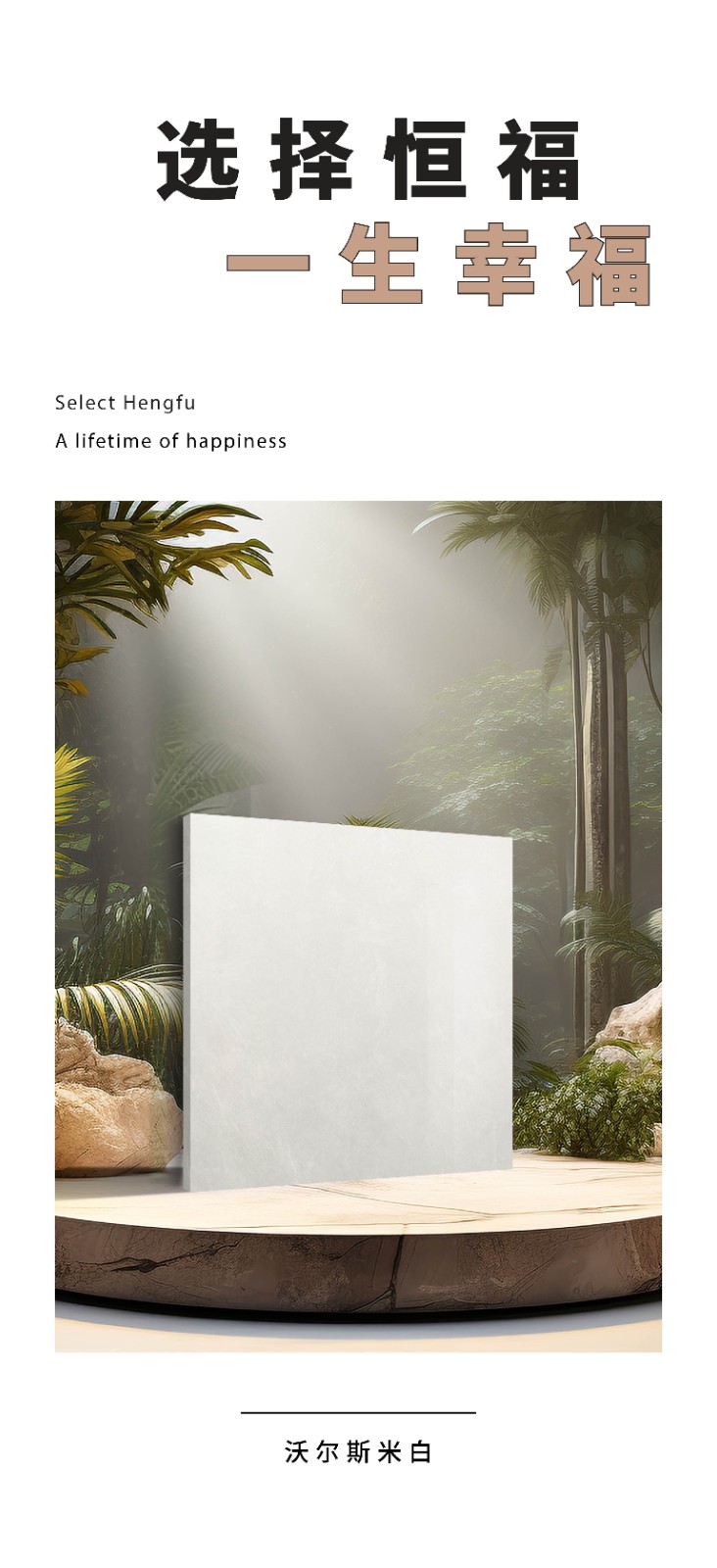 恒福瓷砖产品品类涵盖岩板、世纪大板、大理石瓷砖、全抛釉、玻化砖、釉面砖等配套设施,一站式满足消费者个性消费需求。